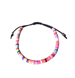 Pulseira com fecho regulável e borrachinhas coloridas.